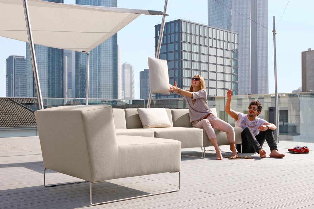 Besonders praktisch: Sie können die einzelnen Outdoor Sessel, Sofa-Ecken und Polsterhocker zu einem beliebig großen Designer Gartenmöbel Set oder Terrassenmöbel Set zusammenstellen. So entstehen ganz individuelle Lounge-Landschaften.