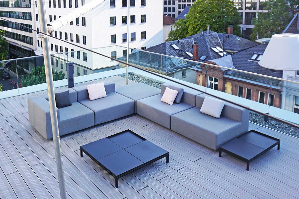 Mit unserem 5-tgl. Outdoor Lounge Set stehen Ihnen alle Möglichkeiten offen, um für Partys, Empfänge, Geburtstage, Spieleabende oder das Sonnenbad Ihre Outdoormöbel perfekt zu platzieren. Auch eine getrennte Platzierung der 3 Garten Lounge Sessel, des Lounge Hockers und der Sofa-Ecke in verschiedenen Outdoorbereichen (Balkon, Terrasse, Garten, Pool) ist möglich. Und selbstverständlich können Sie das 5er-Set auch zu einem 6er-Set, 7er-Set oder 10er-Set erweitern! Im Gegensatz zu einer festmontierten 5er-Gartengarnitur, eröffnet Ihnen unser modulares, 5-teiliges Gartenlounge Set LOOP zahlreiche Aufstellmöglichkeiten.