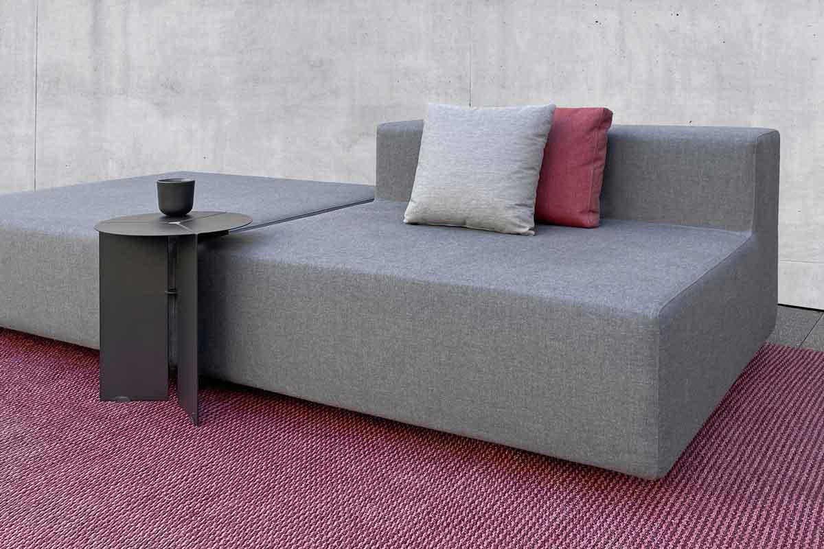 Das minimalistische Design wurde durch die Verwendung eines besonders wasserfesten Stoffs aus dem Yachtsport möglich. Durch den Bezug des Outdoor Sessels mit diesem Stoff konnte ein einzigartiges Design verwirklicht werden, was bisher nur im Indoor Lounge-Bereich machbar war.