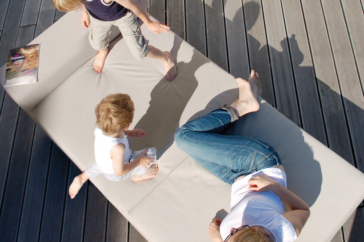 Mit der richtigen Behandlung sind für unsere hochwertig verarbeiteten Loungemöbel Verschmutzungen des schmutzabweisenden, wetterfesten Sunbrella Stoffs aus dem Bootsbau kein Problem.