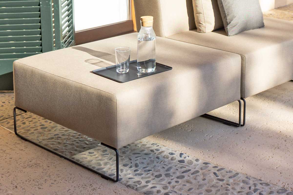 Als eines von 3 Balkon Polstermöbel-Modulen der Serie JAM, kann der Outdoor Hocker JAM auch als Einzelsessel ohne Lehne genutzt werden. Zusammen mit den 2 anderen Modulen – der Sofa-Ecke und dem Lounge Sessel – können Outdoor Loungegruppen und Balkonsofas in beliebiger Zusammenstellung gebildet werden. Wenn Sie nach einem exklusiven Outdoor Polsterhocker oder Gartenhocker suchen, ist der Lounge Hocker JAM eine gute Empfehlung.