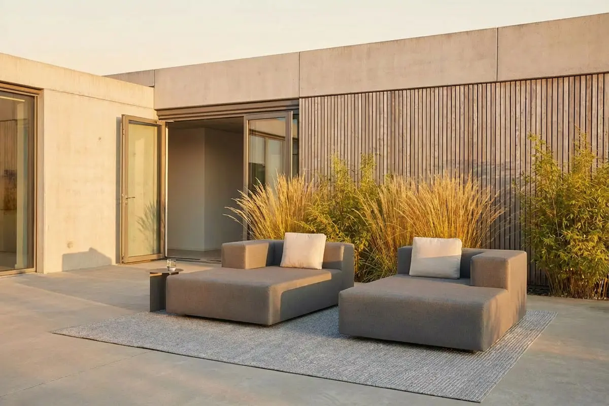 - Flexible Gartenmöbel Sets: Die Outdoor Recamiere kann zusammen mit dem Outdoor Lounge Polsterhocker, dem Outdoor