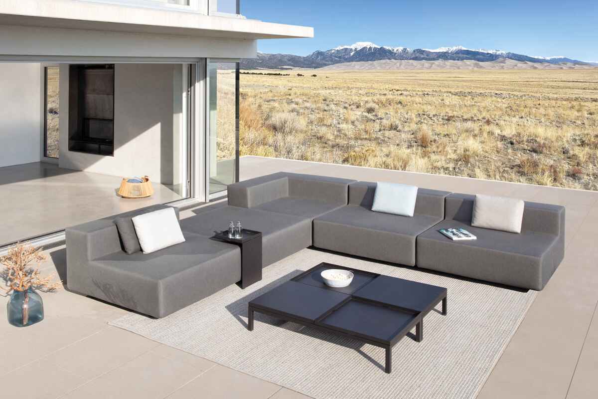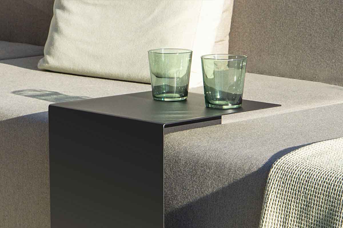 Deshalb ist unser Outdoor Designer Beistelltisch so konzipiert, dass er auch zwischen zwei Balkonsofa-Elementen von april furniture platziert werden kann und so als praktische Abstellfläche für Getränke oder andere Utensilien in Griffweite genutzt werden kann. Zwischen die Polster von 2 Loungegartenmöbel-Elementen geschoben, bildet der Outdoor Beistelltisch FOLD eine optische Einheit mit unseren Gartenlounge-Elementen, Balkonsofas und Lounge Sets.