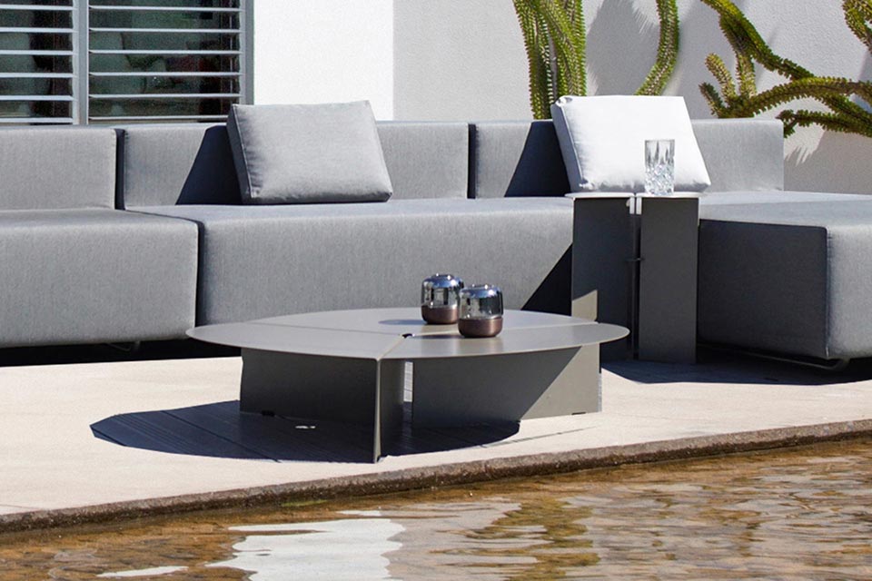 Der praktische Outdoor Beistelltisch bildet die ideale Ergänzung zum modernen, minimalistischen Design unserer Polstermöbel. Das Designermodell passt aber auch zu anderen, hochwertigen Lounge Gartenmöbeln.