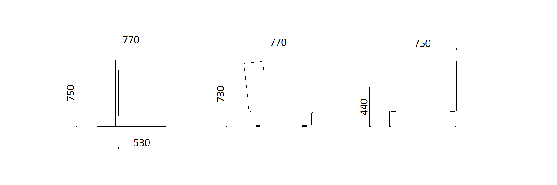 - Maße des Outdoor Armchairs: Breite: 75 cm x Tiefe: 77 cm, Höhe m. Lehne: 73 cm – Sitzhöhe: 44 cm