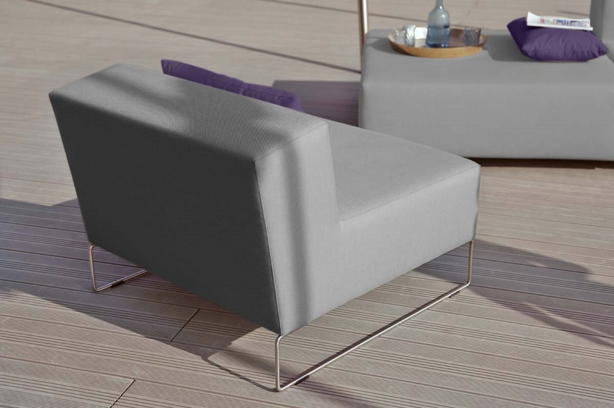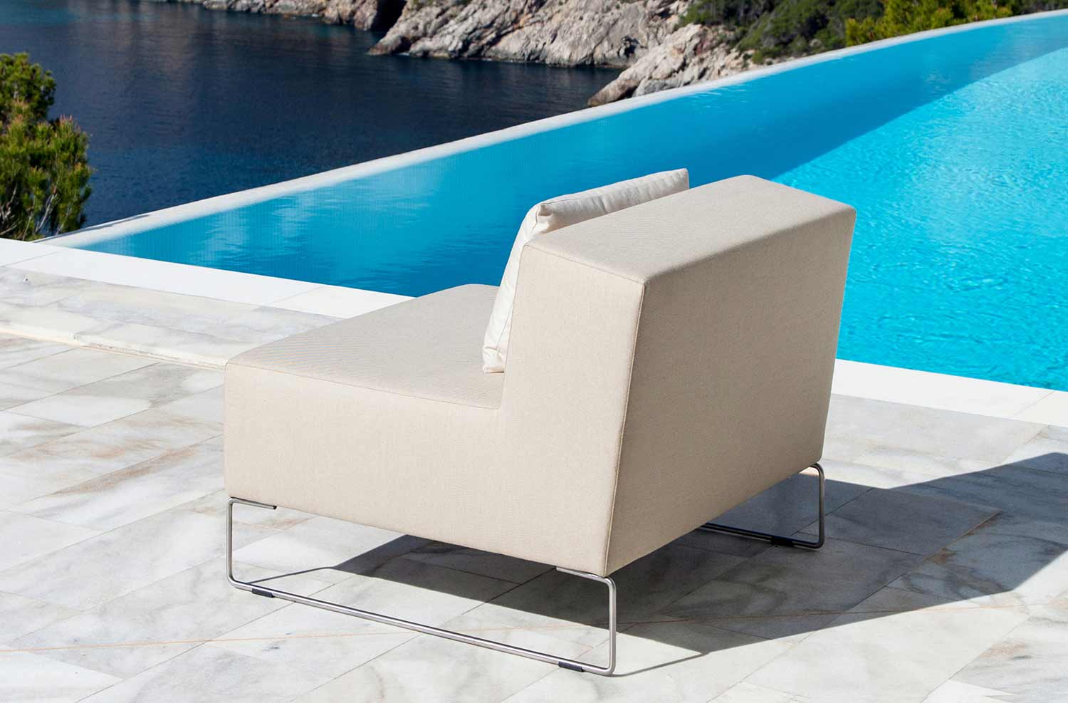 Durch den vollständigen Bezug der Einzelmodule Loungesessel Outdoor, Outdoor Lounge Ecke und Outdoor Lounge Polsterhocker, mit dem besonders wetterunempfindlichen und hautfreundlichen Sunbrella® Stoff aus dem Bootsbau konnte eine besonders hochwertige Polsterung eingesetzt werden, die ein besonders bequemen Sitzkomfort bietet. Gleichzeitig ist der baumwollähnliche Stoff besonders hautfreundlich, sodass auch das Sonnenbaden in Badebekleidung sehr angenehm ist. Die Poster des Outdoor Lounge Sessels sind so bequem, wie man es sonst nur von Indoor Loungemöbeln kennt.